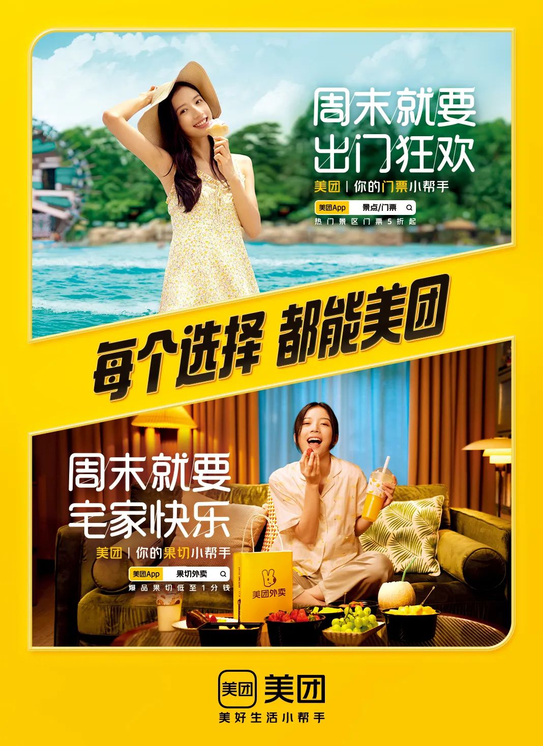 其言外之意便是,选择美团既可以降低时间上的决策成本,也可以体验到它各式各样的服务。 如果再把这 6 支 15 秒 TVC 放在一起看,它们虽然都不是叫卖式广告,但同样都有一种「洗脑」的效果,因为看完之后大家能记住一件事—— 日常生活里做各种选择之前,可以先上美团看看。 无论吃喝玩乐、机酒住行,还是出门宅家、买药买花,在美团上都有得选。 而为了让更多人意识到这一点,美团在这一次传播上也是紧紧围绕「每个选择,都能美团」这个主题来展开。